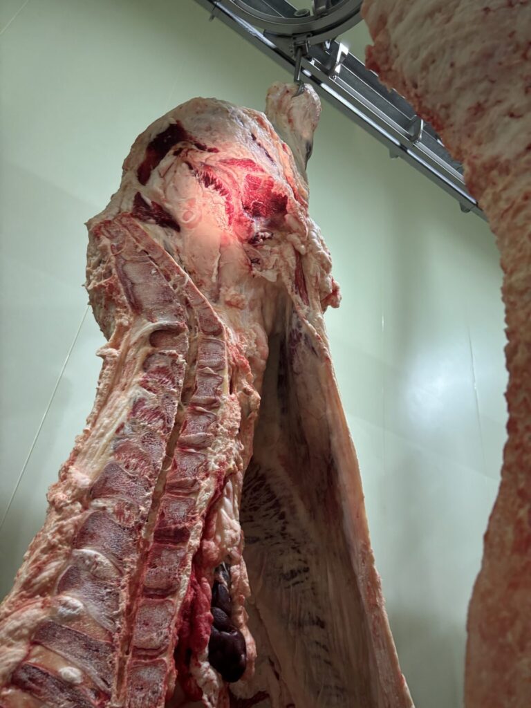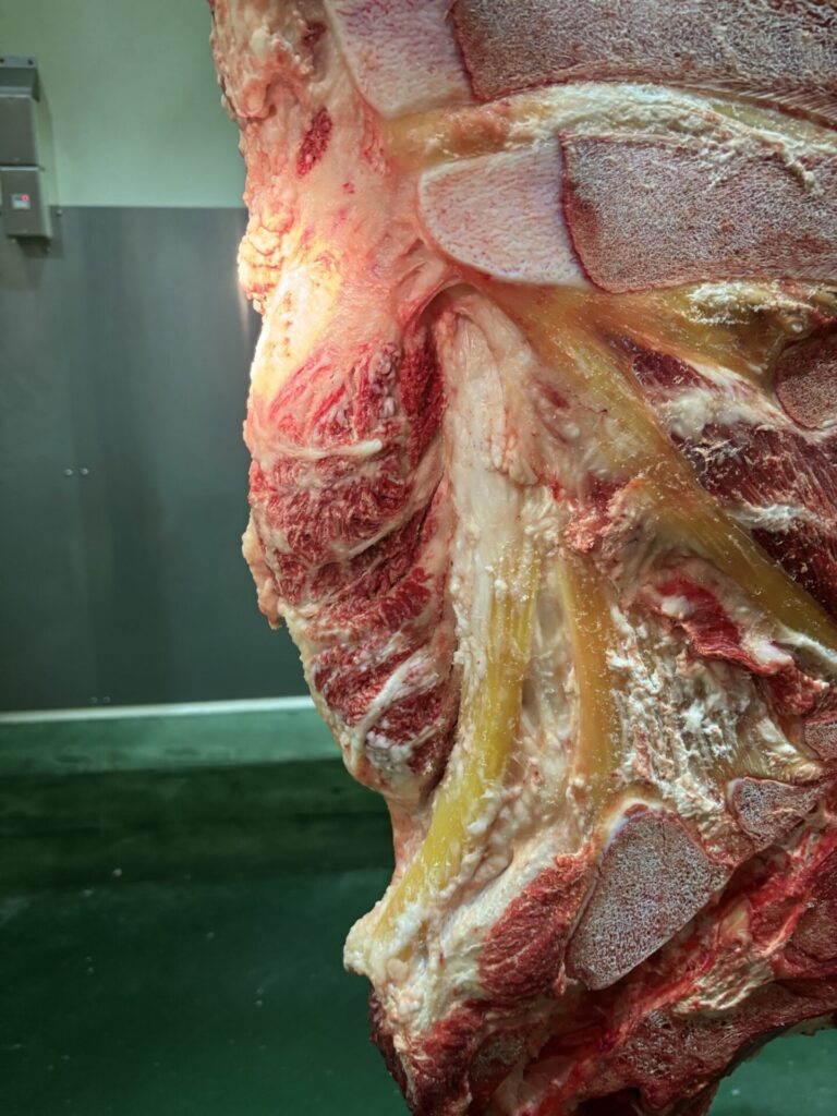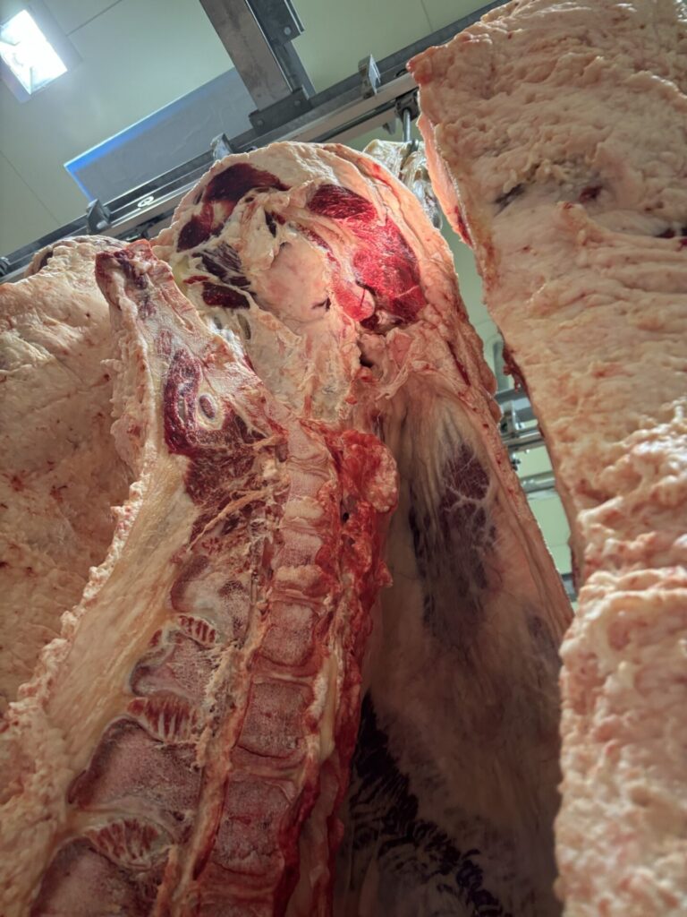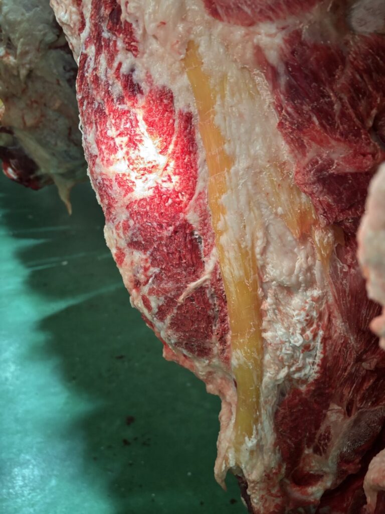 先日、近くの流通センターで2頭の枝肉販売があり、検品に行ってきました。