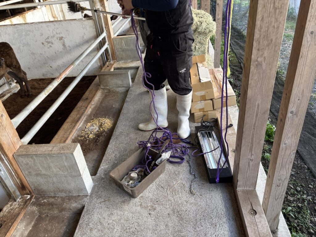 今季最強寒波が来るということで、子牛部屋にヒーターを設置することになりました。