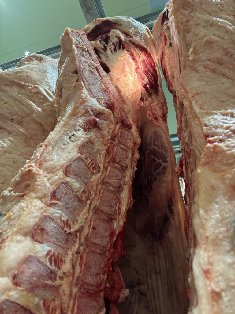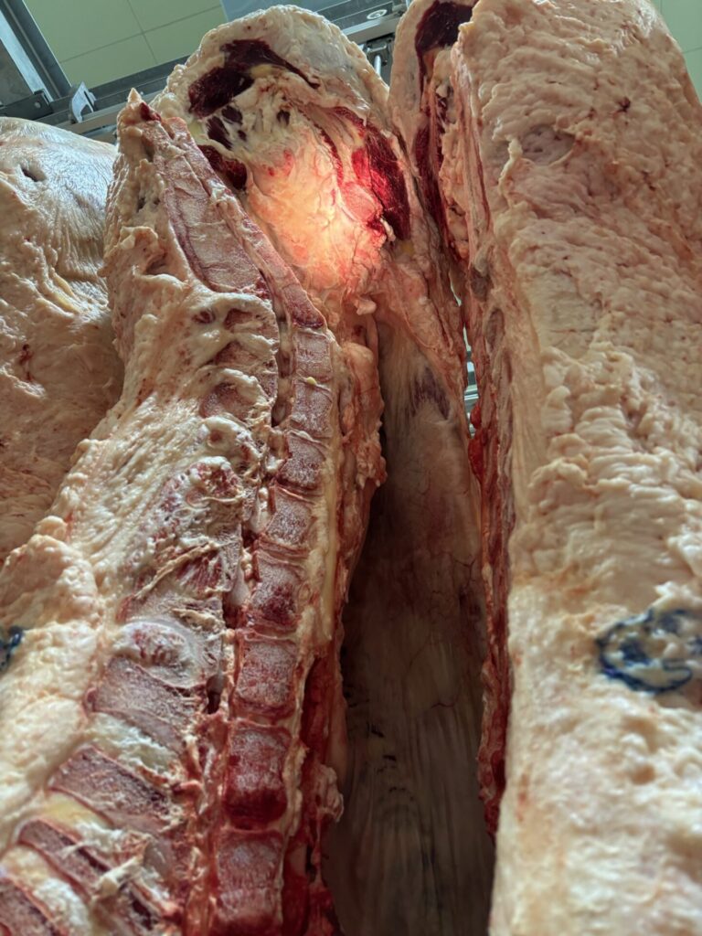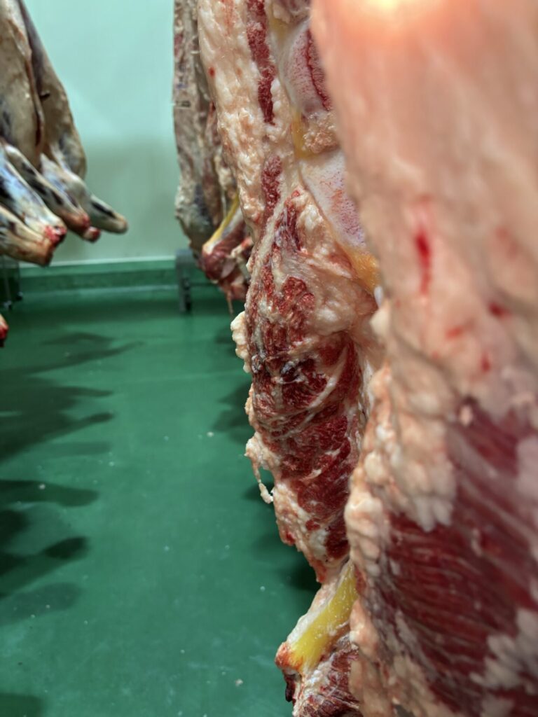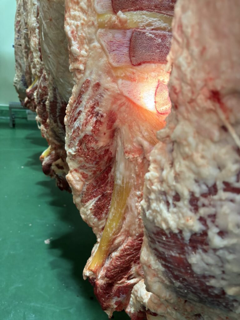 先日、近くの流通センターで2頭の枝肉販売があり、検品に行ってきました。