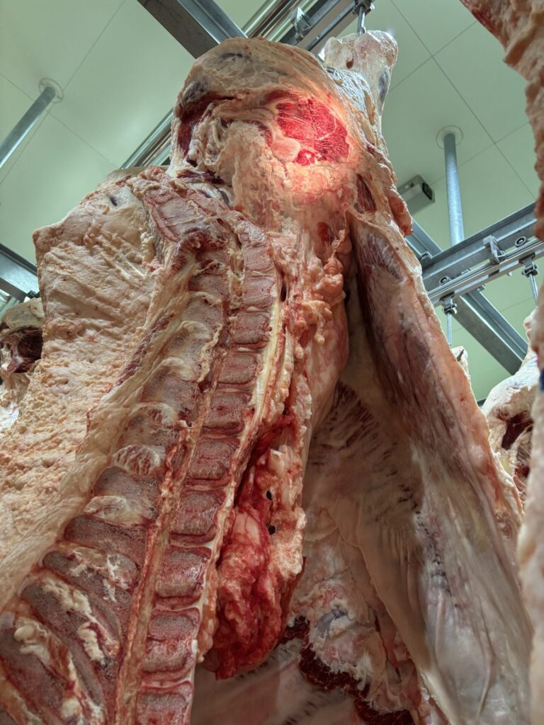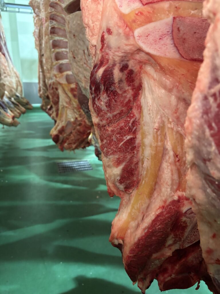 先日、近くの流通センターで2頭の枝肉販売があり、検品に行ってきました。