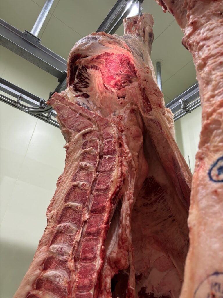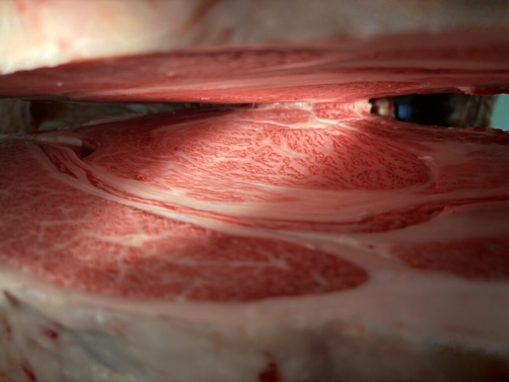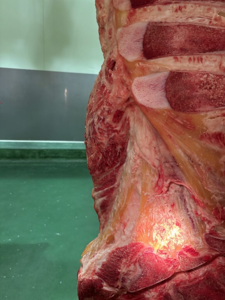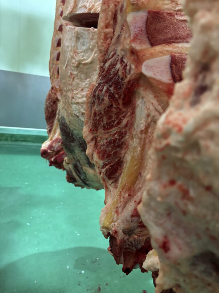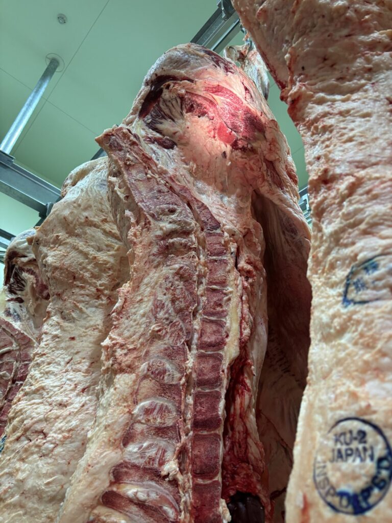先日、近くの流通センターで対米輸出用2頭の枝肉販売があり、検品に行ってきました。