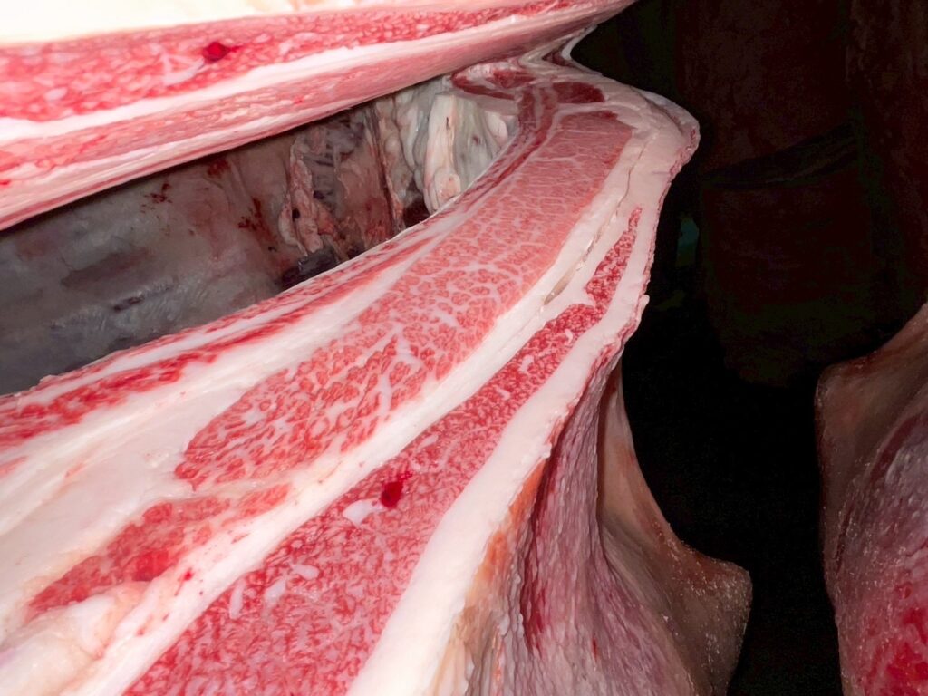 先日、東京食肉市場(芝浦)で、1頭の枝肉販売(セリ)がありました。
