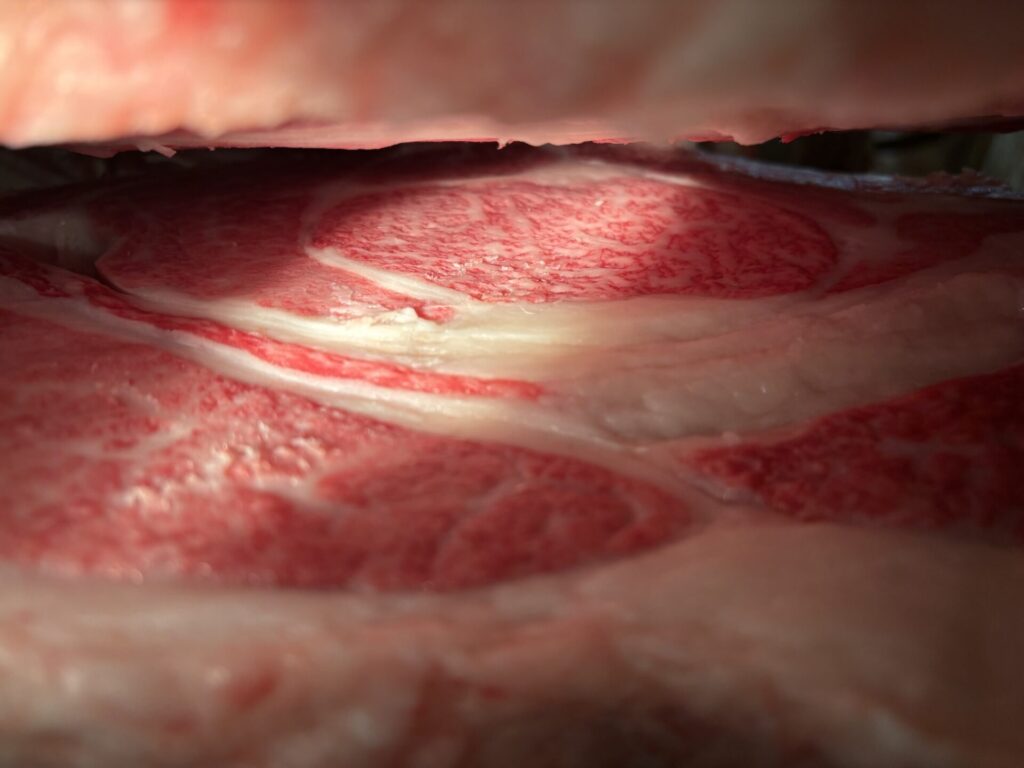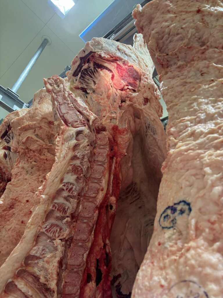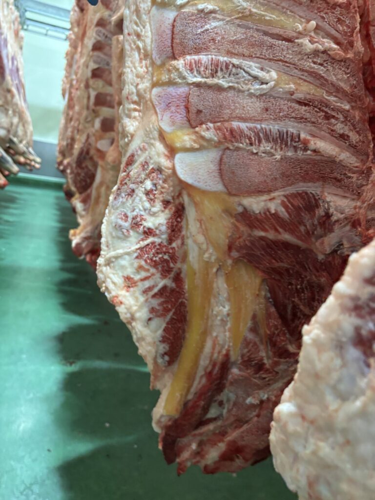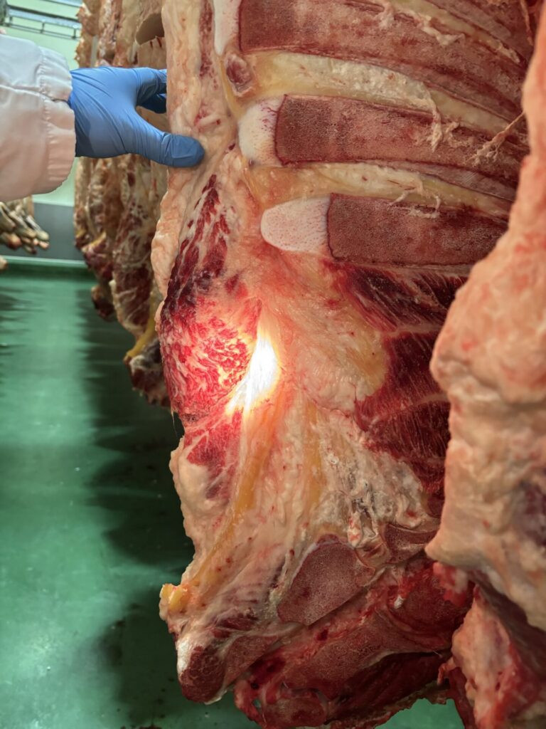 先日、近くの流通センターで3頭の枝肉販売があり、検品に行ってきました。