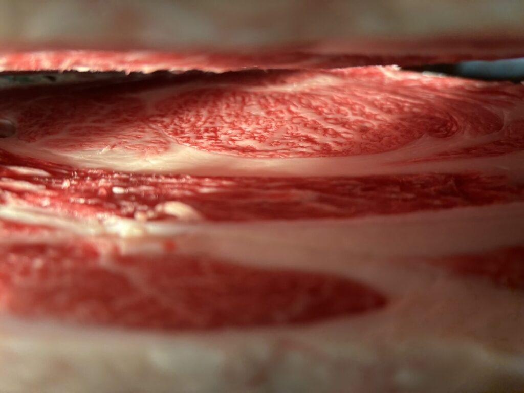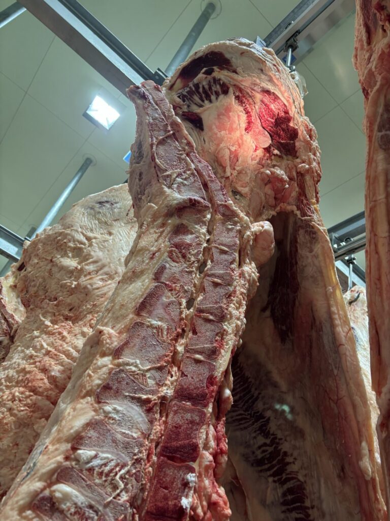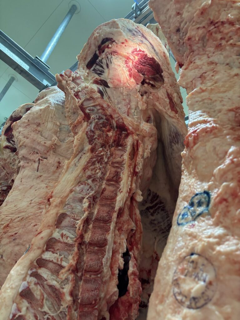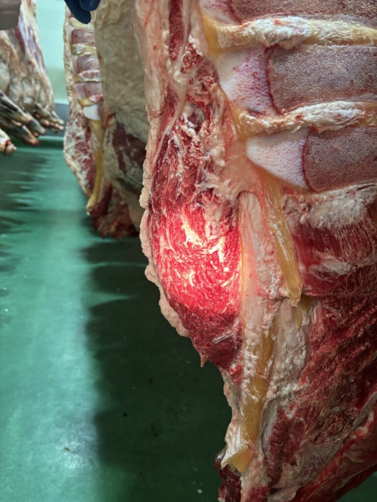 先日、近くの流通センターで3頭の枝肉販売があり、検品に行ってきました。