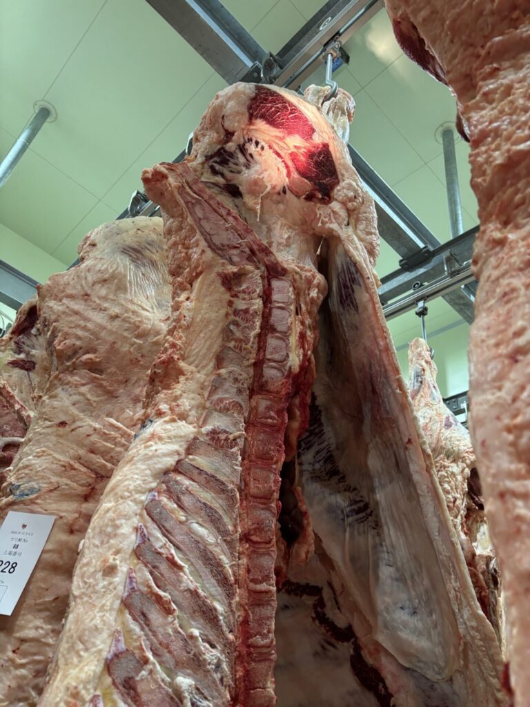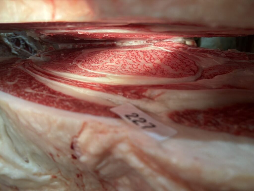 自家産のメスで、少しこじんまりしていましたが、ロース芯の形やサシの入り方がとても綺麗でした。