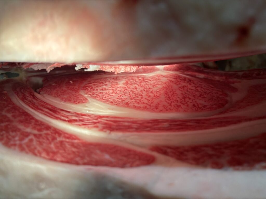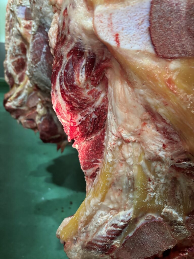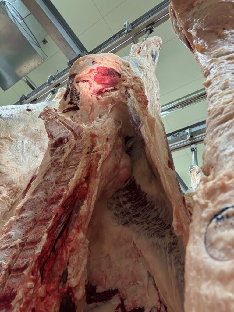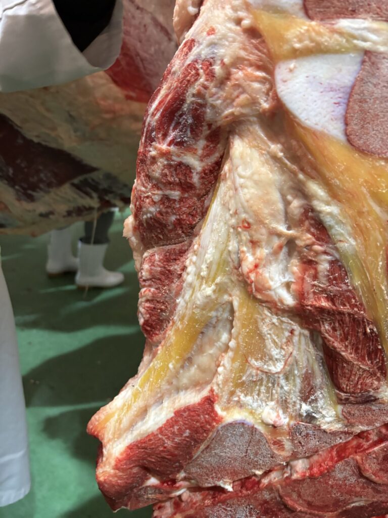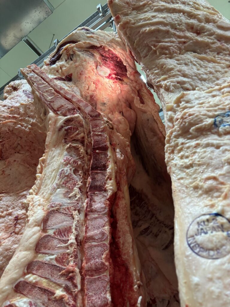 先日、近くの流通センターで3頭の枝肉販売があり、検品に行ってきました。