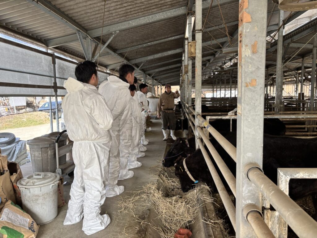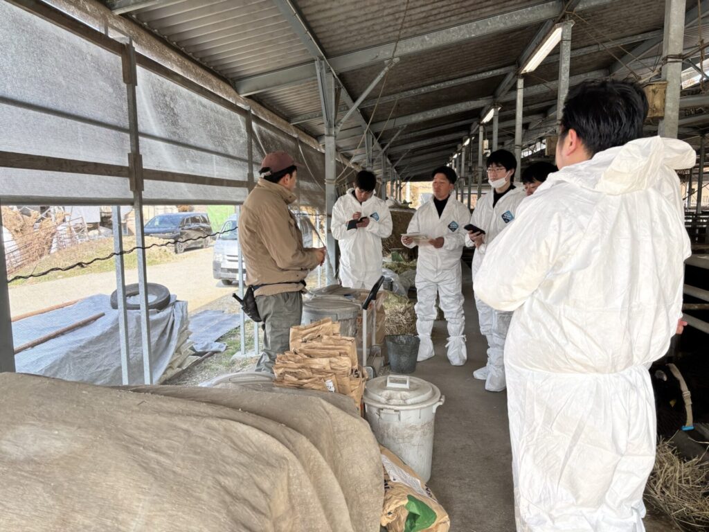 先日、長崎県の牛丸会という和牛農家さんの後継者組織の方々(一貫農家さんが4軒、肥育、繁殖農家さんがそれぞれ1〜2軒)が、佐々畜産の農場視察にいらっしゃいました。