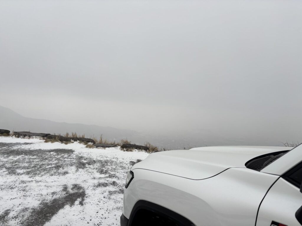 なんとか無事に明るいうちに由布院まで辿り着きましたが、雪はこんな感じ。