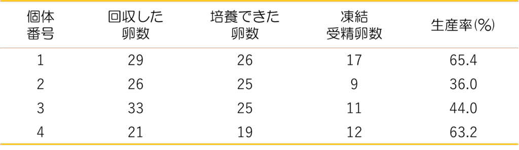 この場を借りて、得られた受精卵の生産率をご報告していきたいと思います。