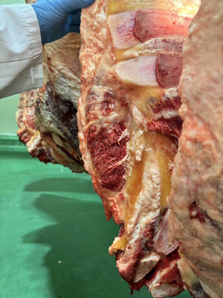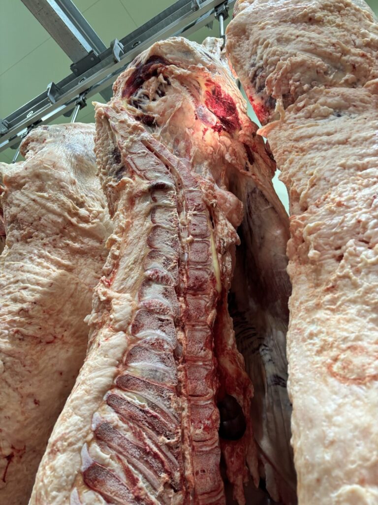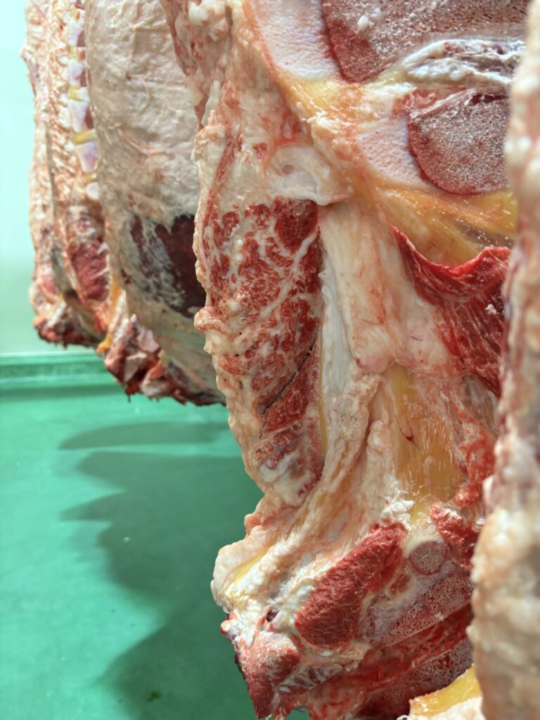 先日、近くの流通センターで2頭の枝肉販売があったので、検品に行ってきました。