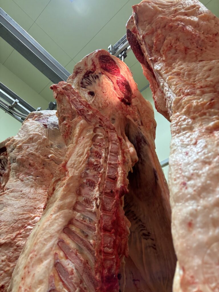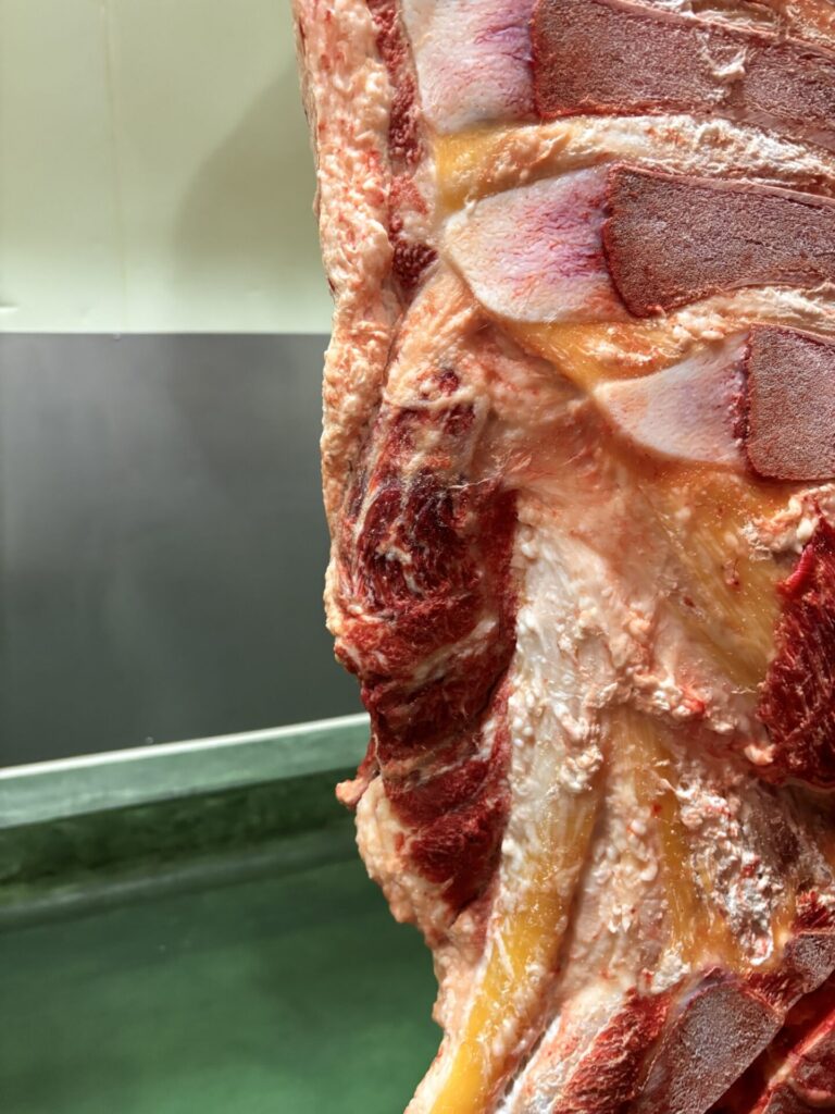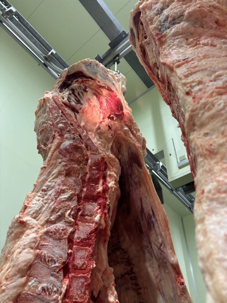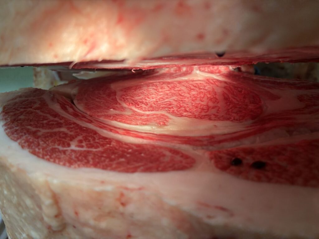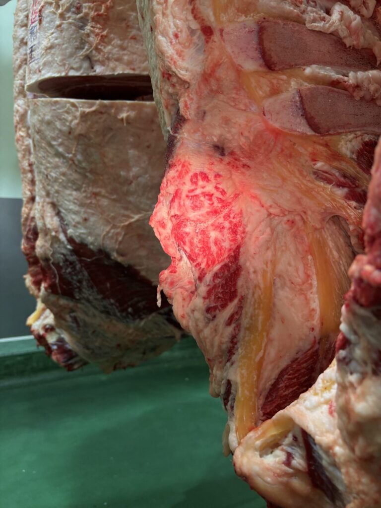 先日、近くの流通センターで対米輸出用2頭の枝肉販売があったので、検品に行ってきました。
