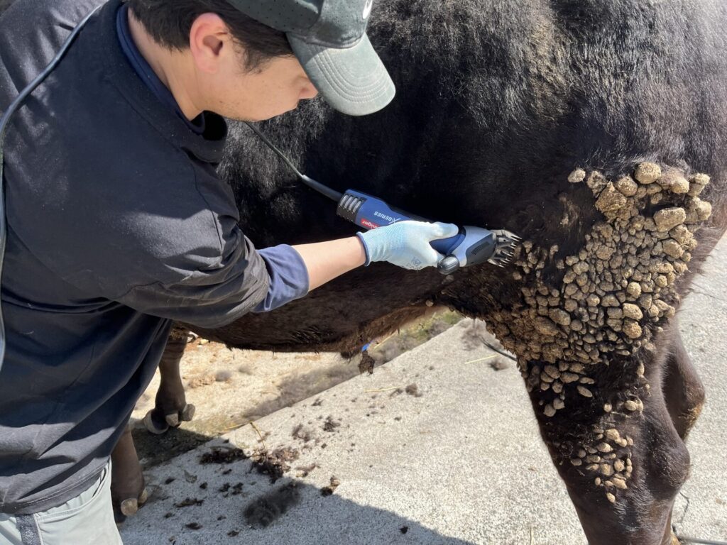 それは、大動物用のバリカン(毛刈り)を用いたヨロイ落としの方法で、実際に使用している農家さんの感触はとても良いとのことでした。