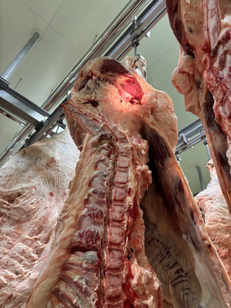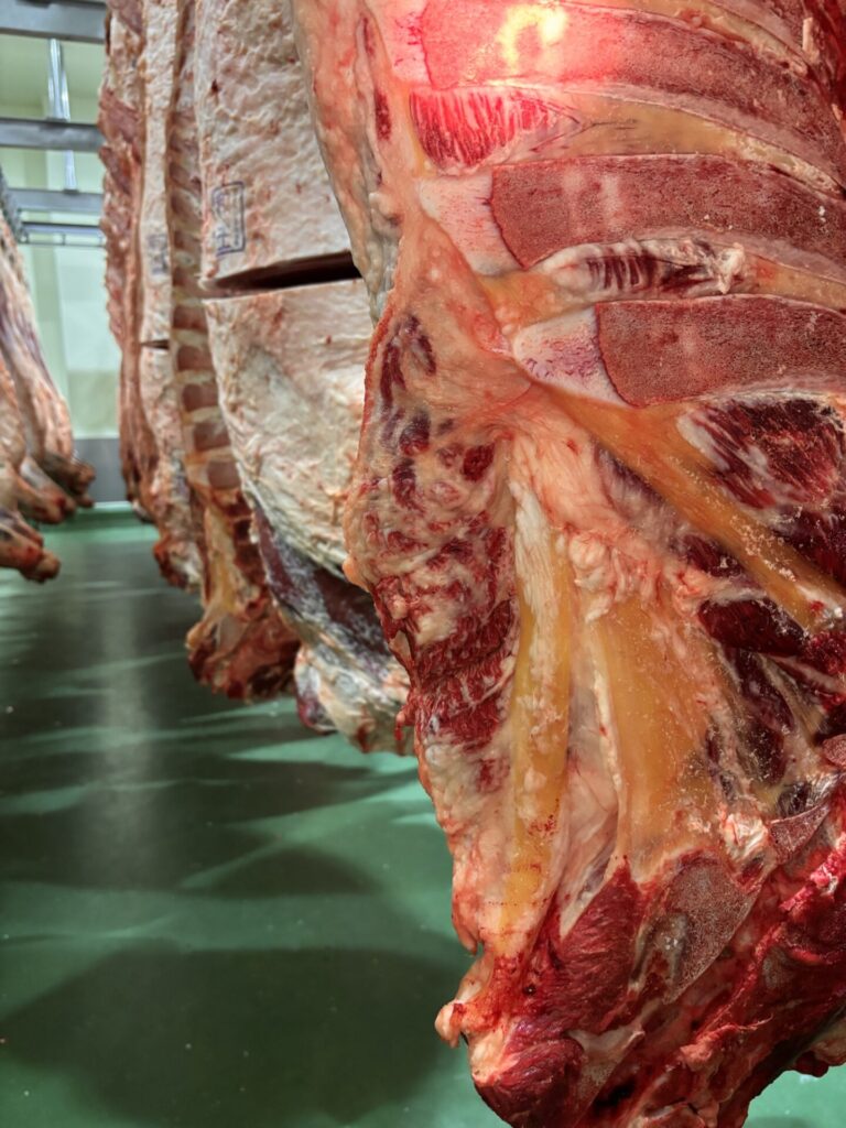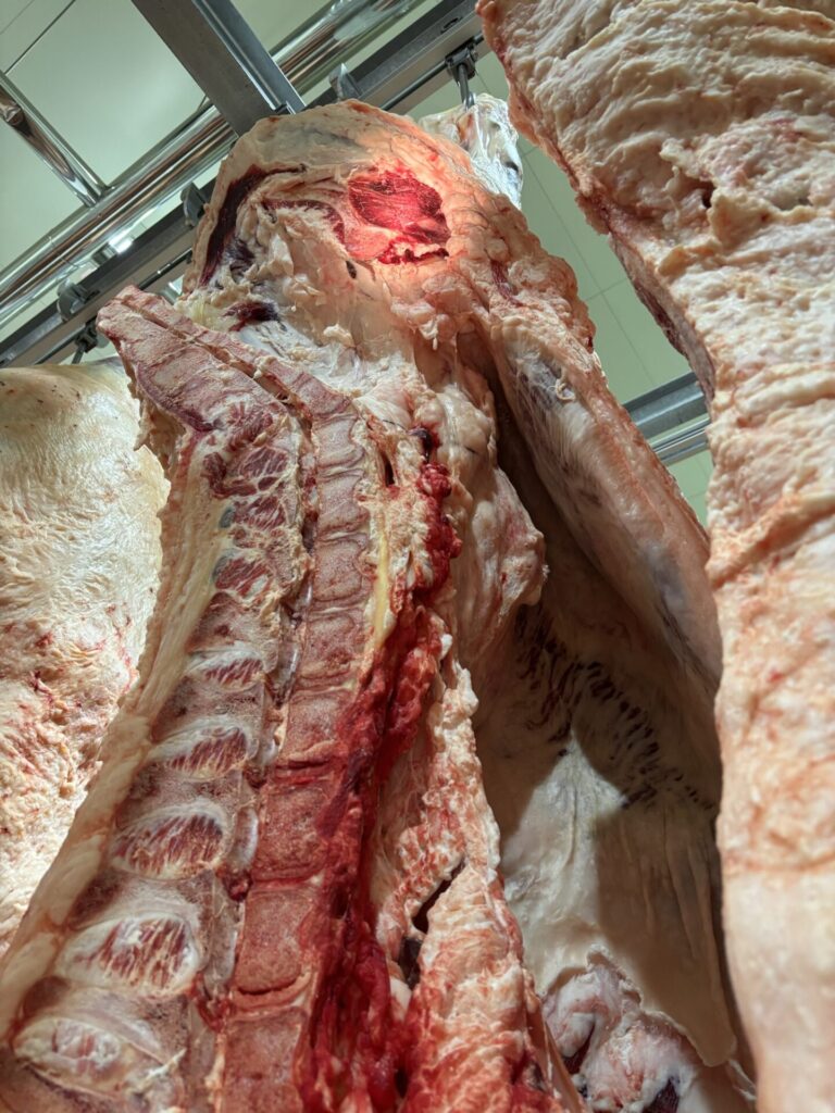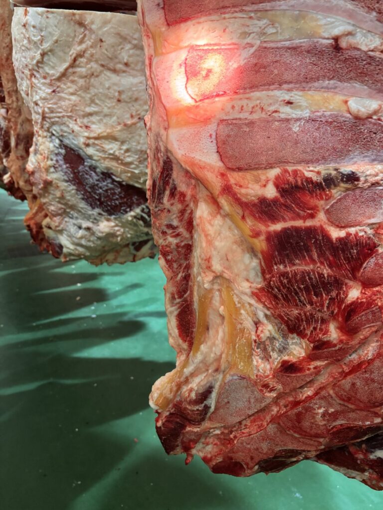 先日、近くの流通センターで2頭の枝肉販売があったので、検品に行ってきました。