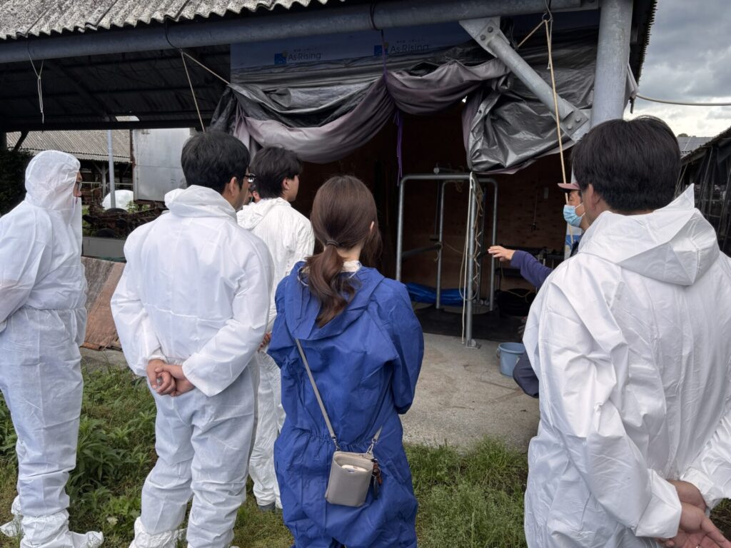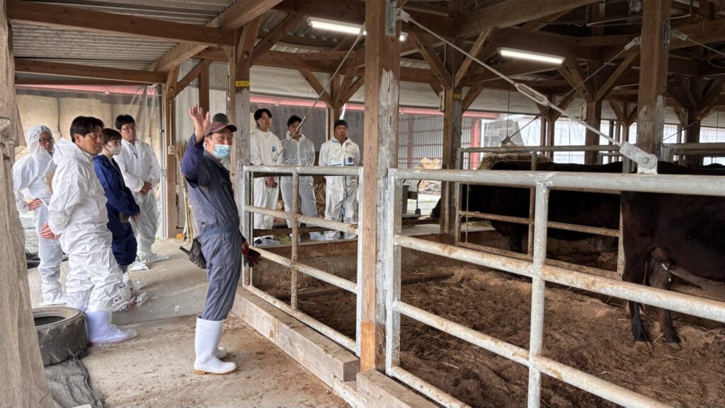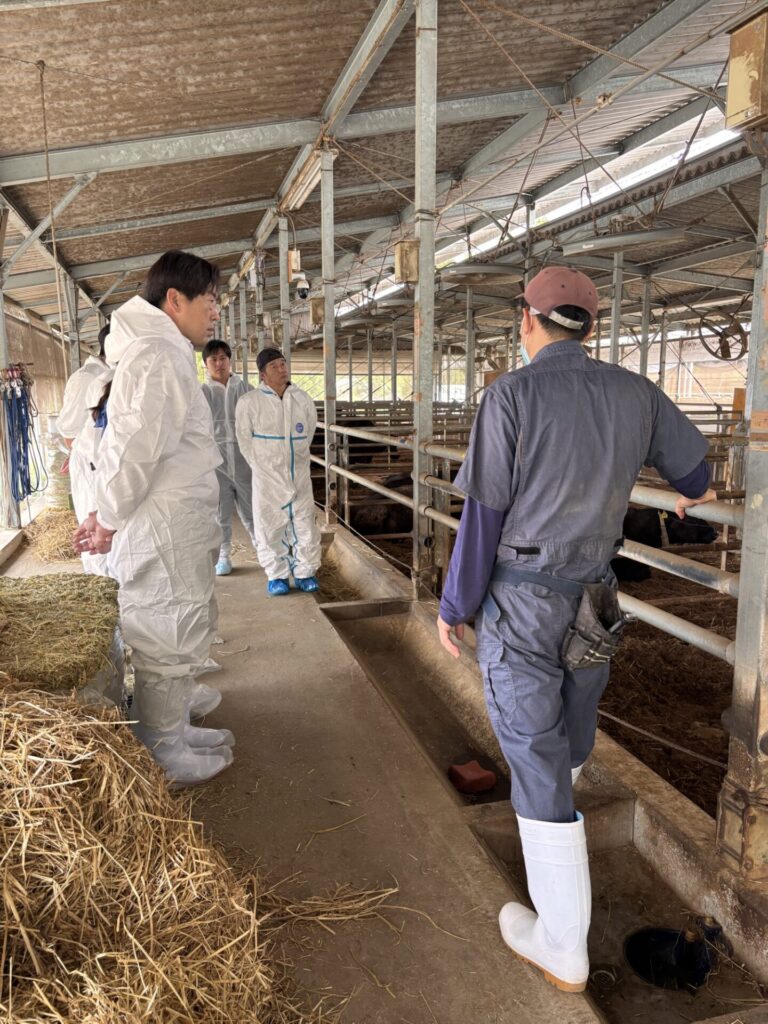 3月の大分宇佐での講習会に参加された農家さんから、佐々畜産の農場視察の申し入れがあり、先日、繁殖農家さんと関係製薬会社の方、合わせて8名が農場にいらっしゃいました。